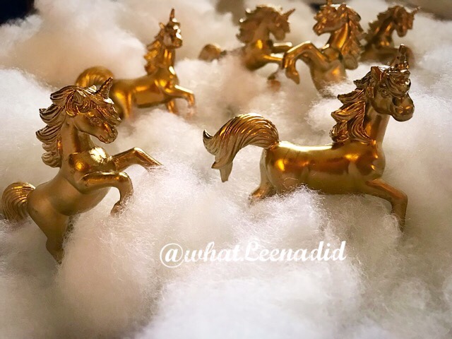 I recently celebrated my daughter’s sixth birthday. It was a unicorn themed party. I wanted to adorn the table with some gold unicorns which would also double as cute favors for the girls to take home at the end! I bought some small plastic unicorns from Amazon. They were white with manes of different colors. They looked extremely cheap and ugly. I bought some gold spray paint again from Amazon and set about spraying the unicorns till they were sparkling in the sunlight. The result was gorgeous as you can see in the picture above!