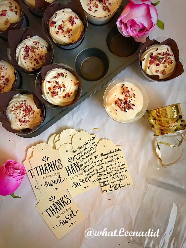 I baked my amazing “RasMalai Cupcakes” and topped them with edible dried rose petals.