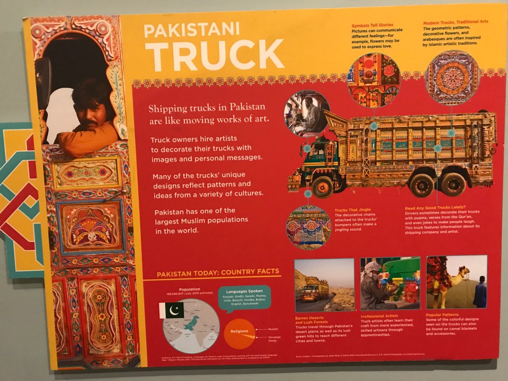 You can see how happy I am to see the traditional Pakistani truck with its vibrant art. This is up for display at the Please Touch Museum in Philadelphia at their America to Zanzibar – Muslim cultures near and far exhibit.