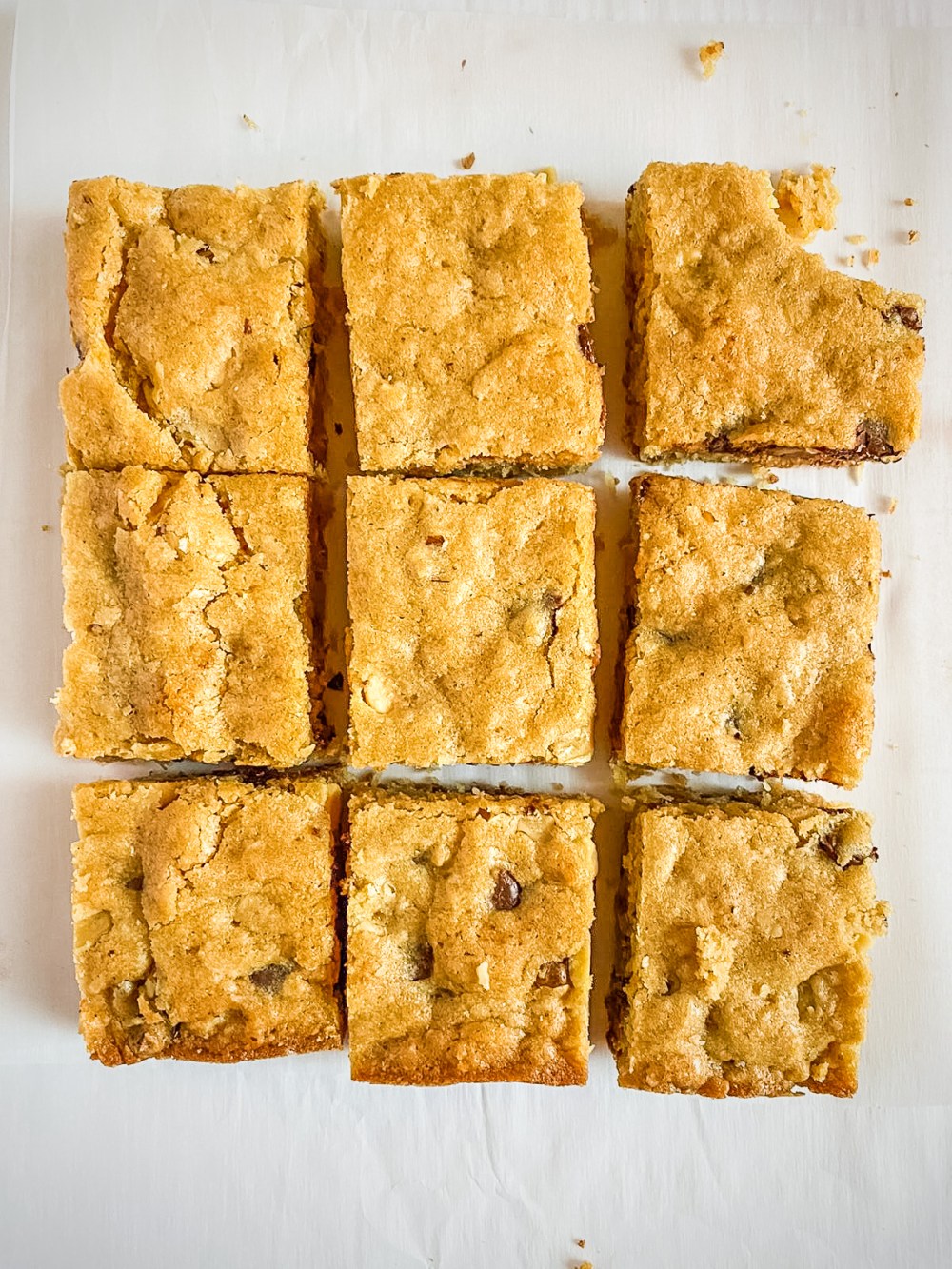 If you love chocolate chip cookies and brownies than blondies are sure to win you over! These are the perfect first cousins to the brownies and cookies. So delicious!
